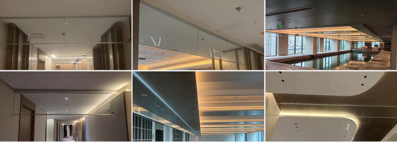 昆山时代皇冠假日酒店选用恒开利固定式刚性挡烟垂壁(6mm透明防火玻璃),安装于1至25层,共计76跨,长度273米。
