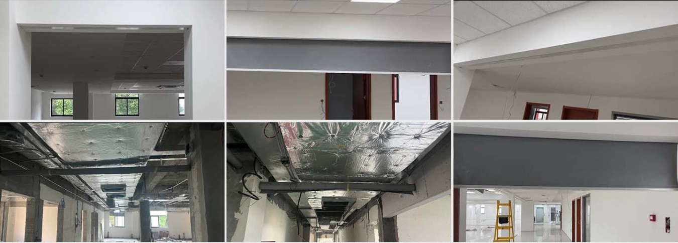2、不降低建筑高度:卷帘式设计,平时收起在吊顶内,只有应急情况才会下降,不会降低建筑高度,普遍适用于一些吊顶高度低于3.2m 及对使用高度有要求的工程项目。