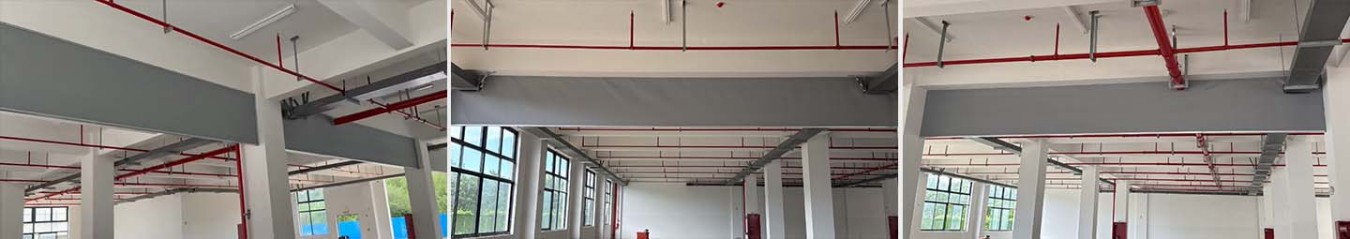2、固定式柔性挡烟垂壁主材轻便,方便安装,对楼板及主体结构不产生负担。