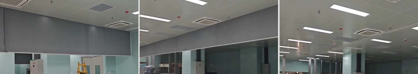 2、不降低建筑高度:卷帘式设计,平时收起在吊顶内,只有应急情况才会下降,不会降低建筑高度,普遍适用于一些吊顶高度低于3.2m 及对使用高度有要求的工程项目。