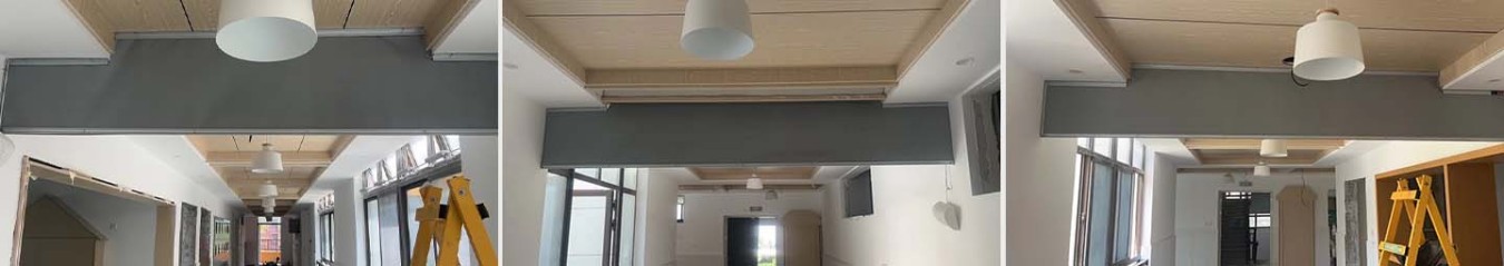 嘉善兴贤幼儿园选用恒开利挡烟垂壁的固定式柔性挡烟垂壁(0.5mmA级防火布)。