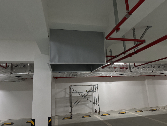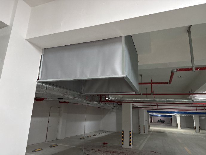 滨河映居住小区工程总承包(EPC)项目,位于江苏省宿迁市宿城区,选用了恒开利固定式柔性挡烟垂壁(0.5mmA级防火布)。