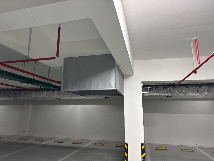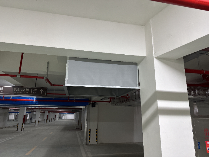 滨河映居住小区工程总承包(EPC)项目,位于江苏省宿迁市宿城区,选用了恒开利固定式柔性挡烟垂壁(0.5mmA级防火布)。
