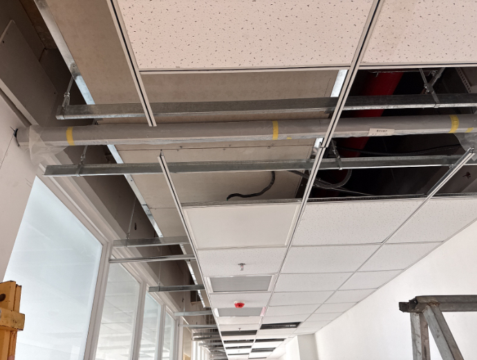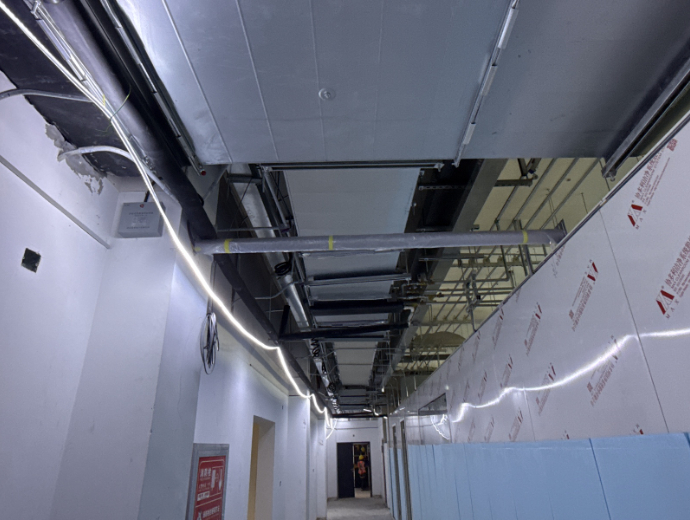 墨尼克医疗用品(苏州)有限公司新建伤口护理敷料用品生产项目,位于常熟市东南大道1150号G栋,选用了恒开利金属科技(苏州)有限公司生产的电动挡烟垂壁(0.5mmA级防火布),目前初装已完成,待吊顶完成后正式调试。