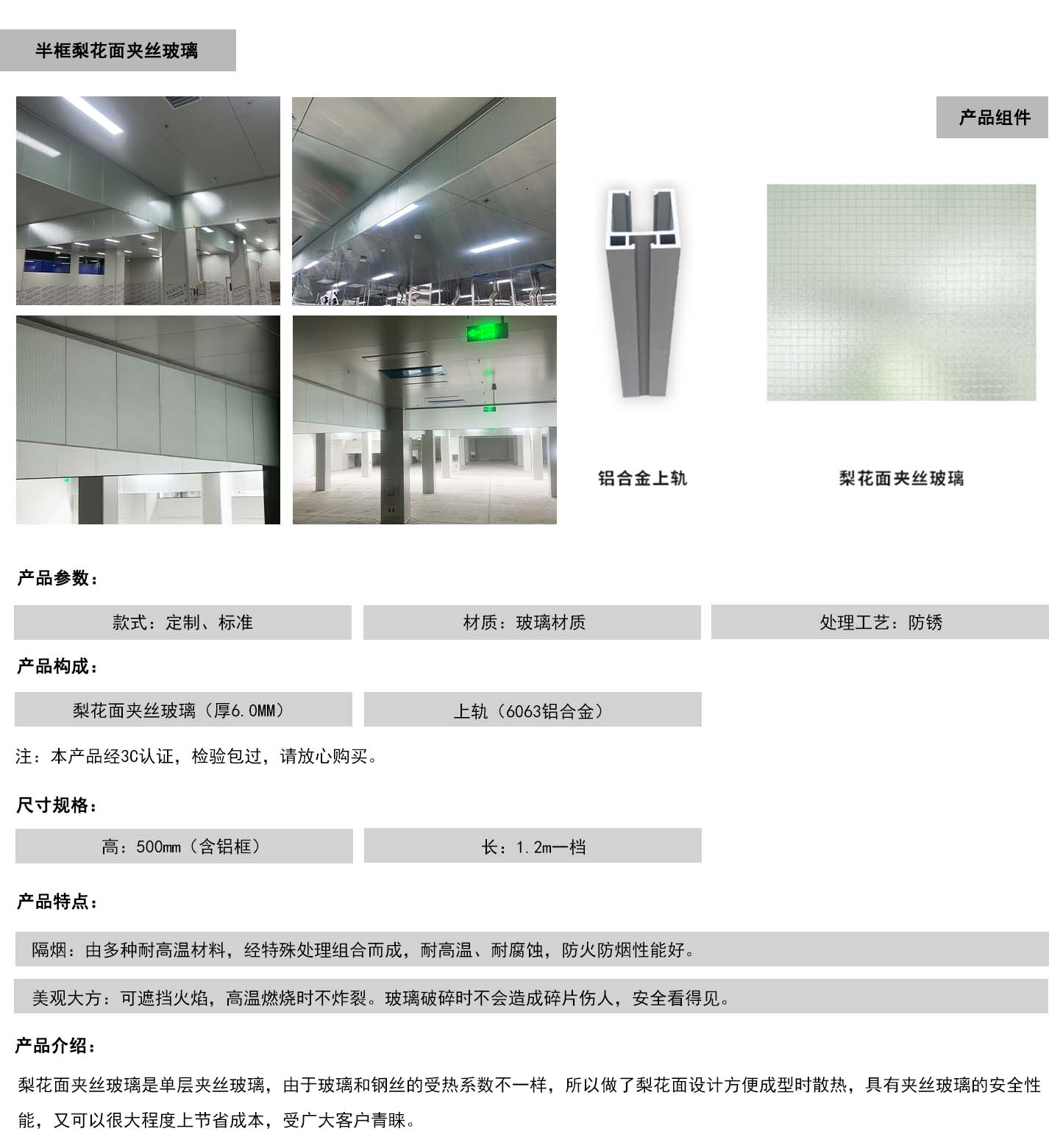固定式刚性挡烟垂壁-半框梨花面夹丝玻璃