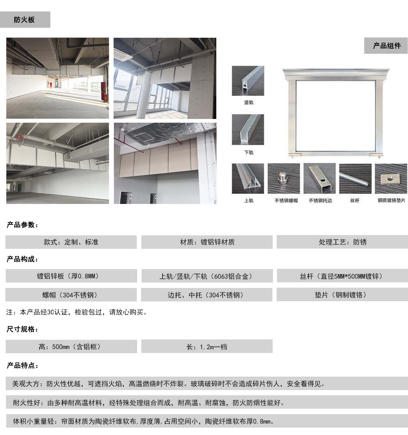 固定式刚性挡烟垂壁-防火板