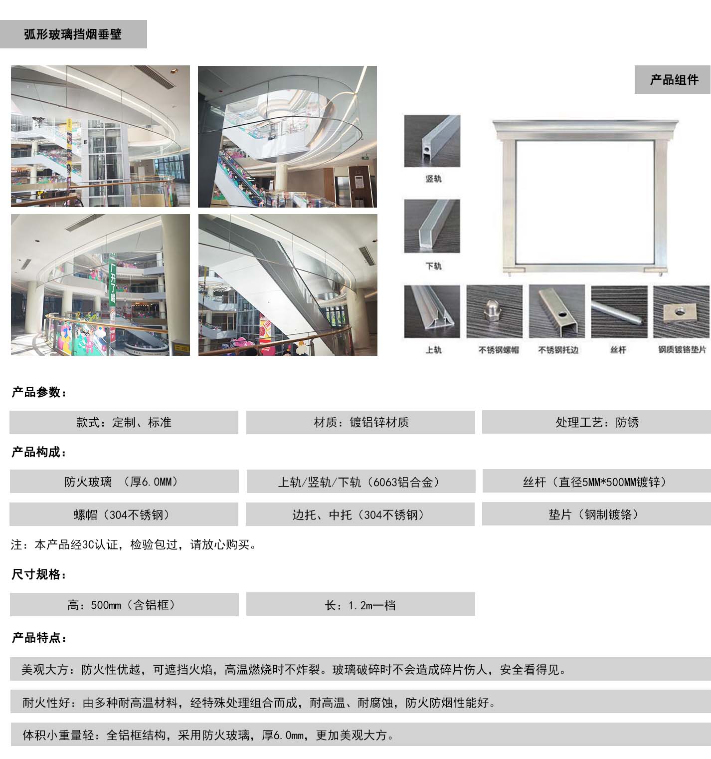 固定式刚性挡烟垂壁-弧形玻璃挡烟垂壁