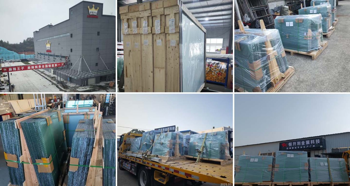 湖南麻辣王子选用了恒开利金属科技(苏州)有限公司的三款挡烟垂壁,分别是:活动式柔性挡烟垂壁、固定式柔性挡烟垂壁和固定式刚性挡烟垂壁。这次发货的是固定式刚性——夹丝玻璃挡烟垂壁。
