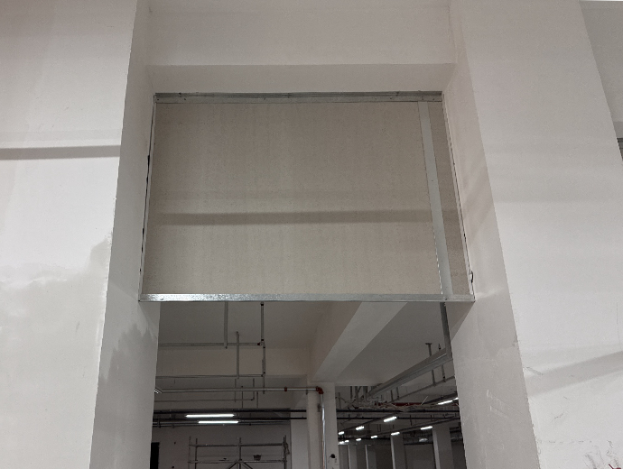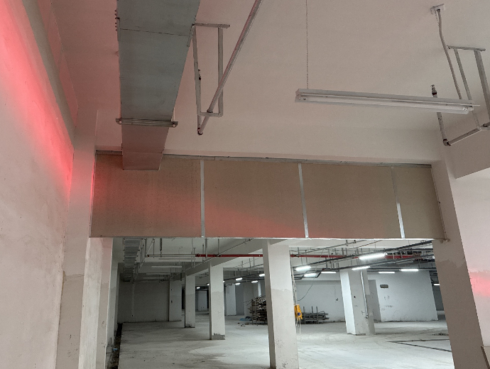 苏州中新项目选用了恒开利固定式刚性挡烟垂壁(10mm防火硅酸钙板),共计1300多平方米,目前正在安装。