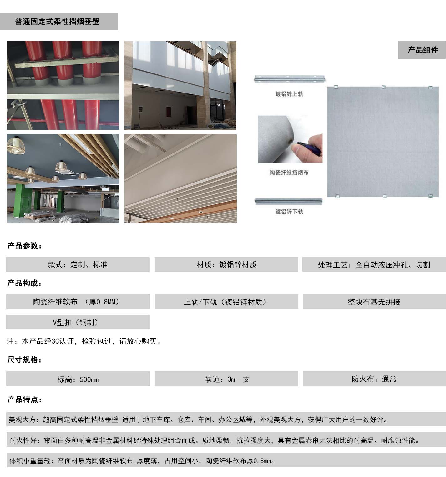 普通固定式柔性挡烟垂壁