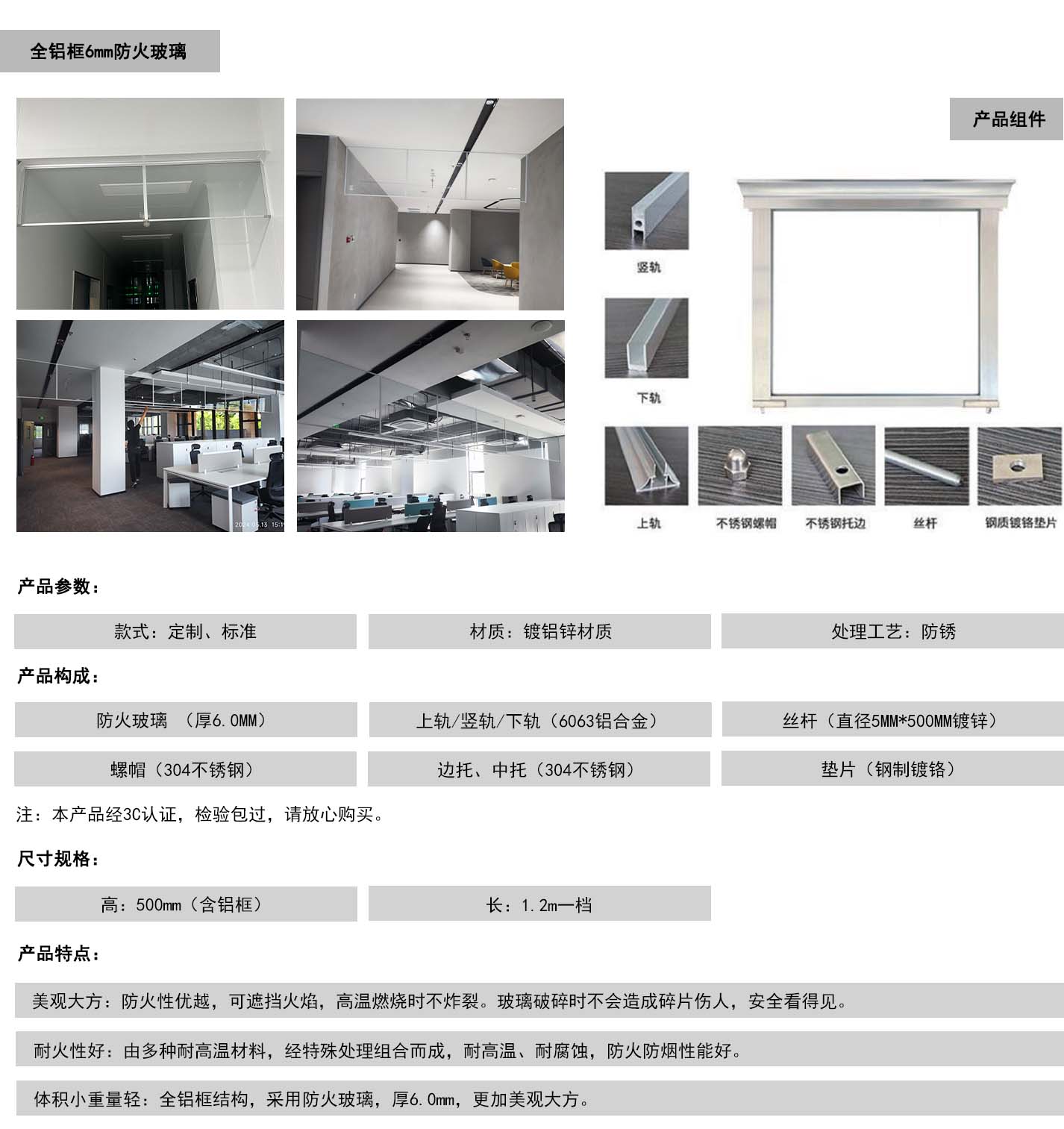 固定式刚性挡烟垂壁-全铝框6mm防火玻璃