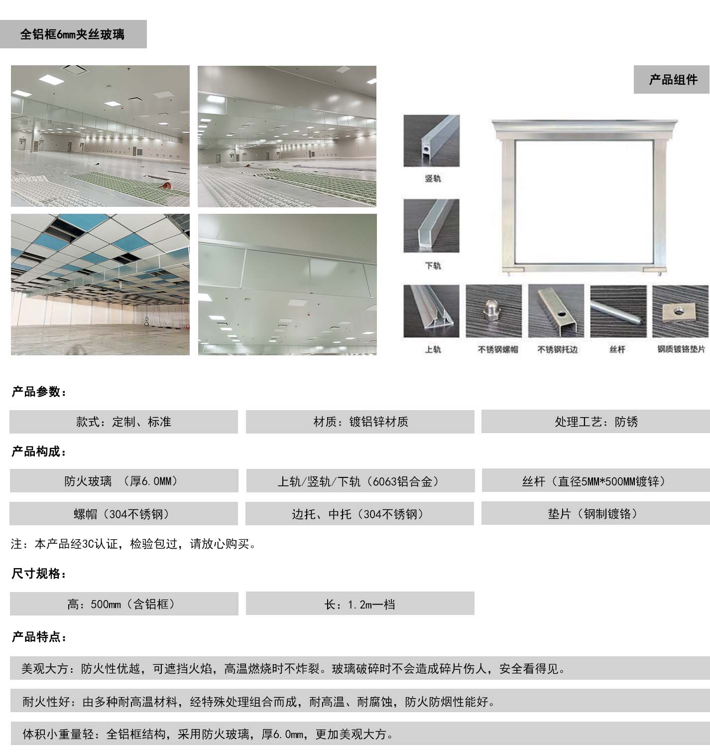 固定式刚性挡烟垂壁-全铝框6mm夹丝玻璃